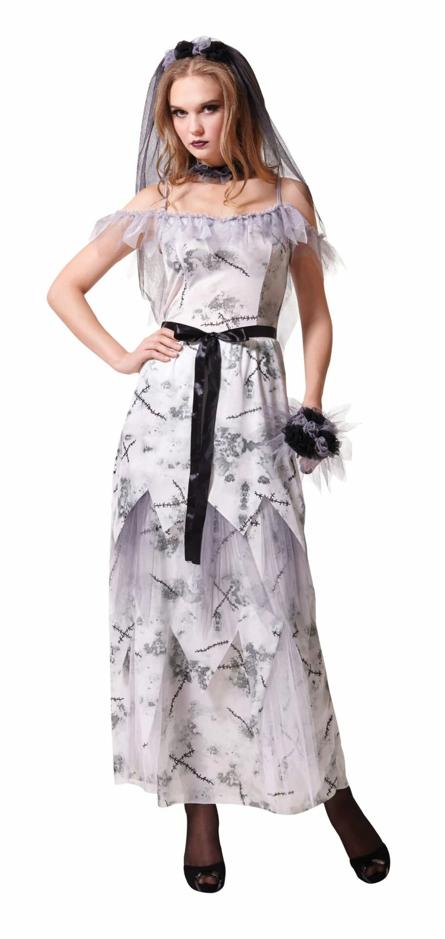 Included:Dress, Veil, Choker & Flower Bouquet